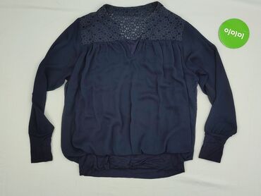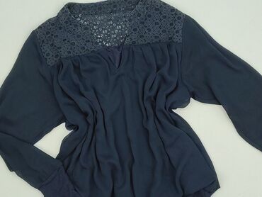 Granatowa koszula/bluzka damska z długim rękawem - Kolor: ciemny granat - Krój: luźny, tył lekko wydłużony, dekolt w kształcie litery V - Zapięcie: listwa na środku (dekoracyjna lub ukryta) - Ręka...
