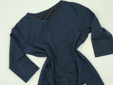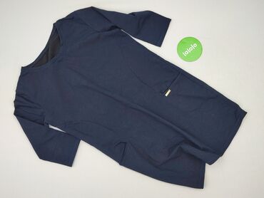 Sukienka damska, granatowa - Fason: prosty, lekko rozszerzany ku dołowi - Długość: za kolano (midi) - Rękaw: 3/4 - Dekolt: łódka - Materiał: dzianina bawełniana z domieszką elastanu (miękka, elast...Stan: