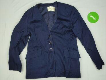 Damska marynarka garniturowa w kolorze ciemnogranatowym. - Krój klasyczny, lekko taliowany - Zapięcie na 3 guziki z przodu - Klapy w stylu notch lapel - Dwie kieszenie z patkami z przodu - Rękawy ...