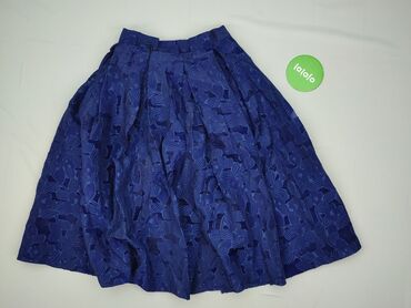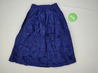 Spódnica damska, granatowa, z połyskiem - Fason: rozkloszowana, z obszernym dołem i widoczną warstwą tiulu/siateczki przy dolnej krawędzi dla efektu objętości - Długość: midi (za kolano) - Materia...