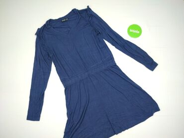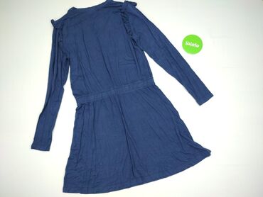 Sukienka H&M – granatowa, damska - Rozmiar: EU 36 (US/CA 6, CN 165/84A) - Fason: mini/krótka tunika - Rękawy: 3/4, mankiety zapinane na guzik - Dekolt: kopertowy z falbaną, częściowo zapinany na g...