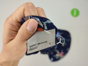 Sukienka Vero Moda – rozmiar M - Krój: kopertowy/z zakładką w talii, dopasowana góra, lekko rozkloszowany dół do kolan. - Rękaw: krótki. - Dekolt: w kształcie litery V. - Wzór: granatowa baza w du...