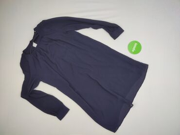 Luźna tunika/sukienka damska, granatowa - Krój oversize, proste linie, długość do połowy uda - Rękawy 3/4 z obniżoną linią ramion - Okrągły dekolt z dekoracyjnymi paseczkami z tyłu oraz wycięciem ...