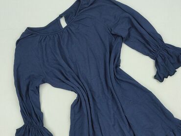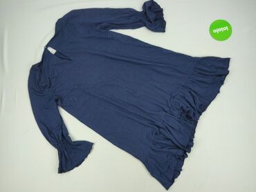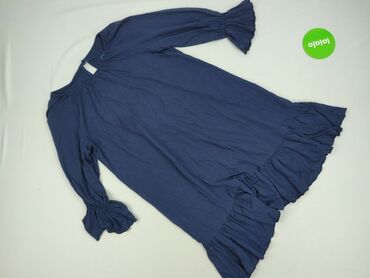 Sukienka damska, granatowa - Fason: rozkloszowana mini z kilkoma warstwowymi falbanami u dołu - Rękawy: długie, zakończone delikatną gumką - Dekolt: elastyczny, z marszczeniem i troczkami do zawią...