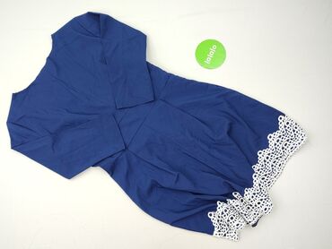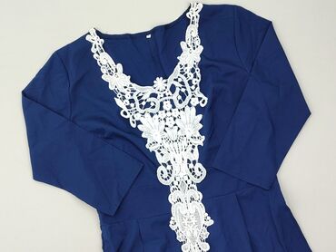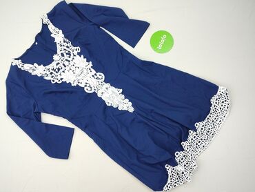 Granatowa sukienka z koronką - Krój: prosta, lekko dopasowana, długość do kolan (mini/midi zależnie od wzrostu), dekolt okrągły - Rękawy: krótkie, wykonane z ażurowej koronki; wstawka koronkowa ró...Stan: