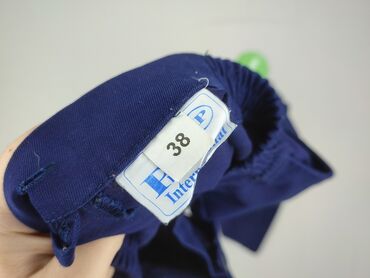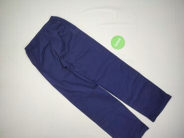 Ciemnoniebieskie spodnie damskie o prostym kroju nogawek, zapinane na zamek błyskawiczny i guzik. Wykonane z mieszanki bawełny, poliestru i elastanu, co zapewnia komfort noszenia i dopasowanie do s...