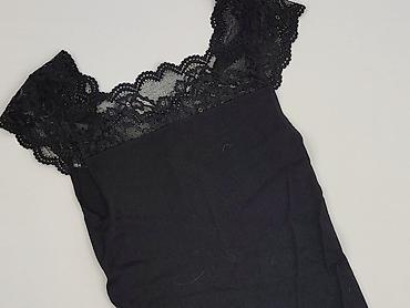Bluzka damska CROPP, czarna. - Krój: krótki top z krótkim rękawem - Dekolt: V z paseczkiem łączącym z tyłu karku - Detale: ażurowe wstawki z koronki na ramionach oraz szeroka koronka przy dolnej k...