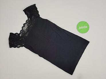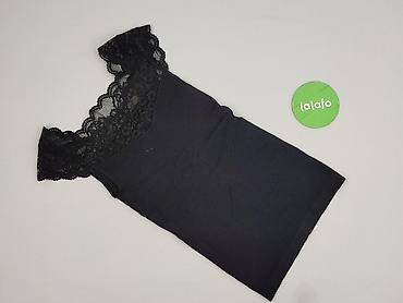 Czarny top damski bez rękawów, rozmiar M - Fason: prosty, na grubszych ramiączkach, okrągły dekolt - Materiał: 80% poliamid, 20% wiskoza – lekko elastyczna, cienka tkanina z delikatną, pionową fak...