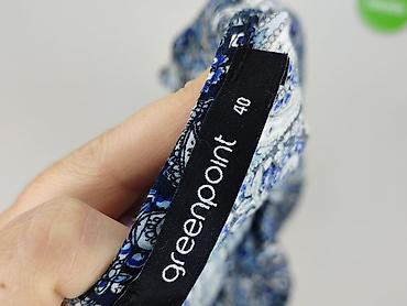 Bluzka damska marki Greenpoint w rozmiarze 40. Wykonana w 100% z wiskozy, co zapewnia komfort noszenia. Charakteryzuje się wzorem paisley w odcieniach niebieskiego. Długie rękawy i okrągły dekolt dodają jej klasycznego wyglądu, odpowiedniego na różne okazje. Jest to używany element garderoby w idealnym stanie.