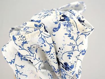 - Wzór: drobne kwiaty w odcieniach niebieskiego na białym tle