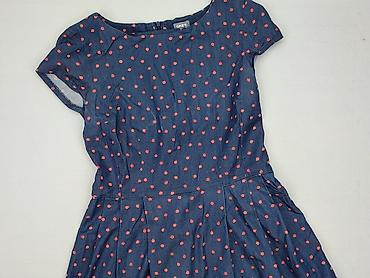 - Krój: dopasowana góra z zaszewkami, odcięcie w talii, rozkloszowany dół; krótkie rękawy, okrągły dekolt