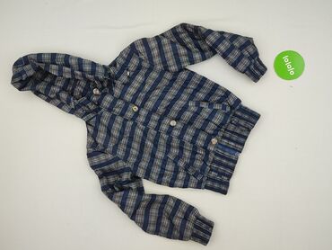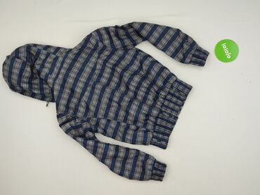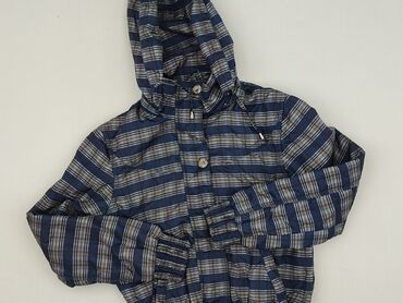 Kurtka dziecięca z kapturem, rozmiar 158. - Wzór: granatowo-biało-brązowa kratka z drobnymi motywami. - Zapięcie: zamek błyskawiczny z przodu. - Kaptur ze ściągaczem. - Dwie przednie kieszenie na z...