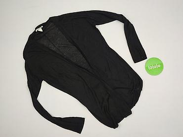 Czarny kardigan damski H&M Basic - Model: otwarty, bez zapięcia - Długość: do bioder/lekko wydłużony - Rękawy: 3/4 - Dzianina: luźny splot, miękka i elastyczna - Detale: ażurowe wstawki przy ramio...