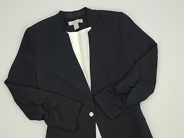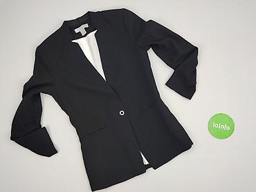 Marynarka damska H&M - Model: klasyczna, jednorzędowa, bez zapięcia (otwarta) - Kolor: czarny - Rozmiar z metki: EU 34 (US 4, CA 4, CN 160/80A, MX 4) - Fason: lekko taliowana, z klapami; długość d...