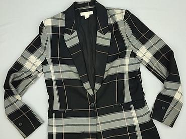 Marynarka damska M&S Collection - Rozmiar z metki: UK 12 / EU 40 (wzrost 165/88A) - Krój: taliowany, z kołnierzem; lekko wydłużony tył z rozporkiem - Wzór: czarno‑biała kratka (geometryczna siatka...
