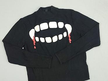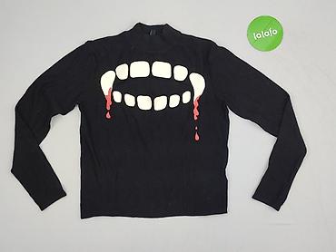 Bluzka damska H&M Divided, czarna, z długim rękawem i krótką stójką. Przód zdobi duży nadruk stylizowanych wampirzych ust z białymi zębami i czerwonymi kroplami – wyrazisty, halloweenowy/gothic akcent.