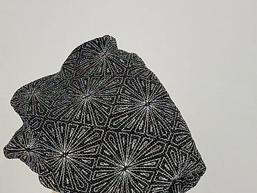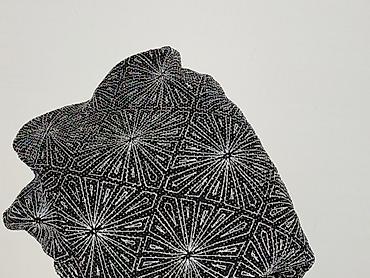 - Wzór: geometryczne, promieniste gwiazdy na czarnym tle; tkanina z delikatnym połyskiem (metalizowana nitka)