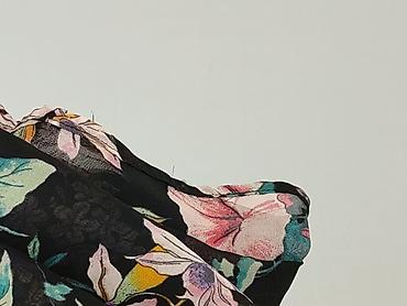 - Wzór: czarne tło z kolorowym, botanicznym nadrukiem (kwiaty i liście w odcieniach różu, żółci, zieleni, fioletu)