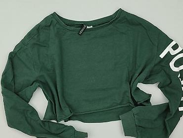 Zielona bluza damska H&M Divided - Krój: krótka/cropped, luźniejsza góra z opuszczoną linią ramion - Rękawy: długie, zakończone ściągaczami - Dekolt: okrągły - Materiał: - korpus: 53% poliester,...