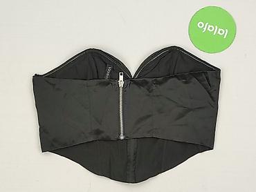 Top/koszulka typu bustier H&M Divided - Kolor: czarny, satynowy połysk - Krój: krótki top/bustier z wąskimi ramiączkami spaghetti - Przód z pionowymi przeszyciami modelującymi sylwetkę - Tył z wią...