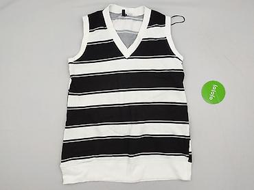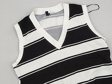 Bezrękawnik damski w paski, rozmiar XS. - Krój: sweater vest/top bez rękawów z dekoltem w serek - Wzór: czarno‑białe, poziome paski; ściągacze w kolorze ecru/kości słoniowej - Materiał (wg metki):...