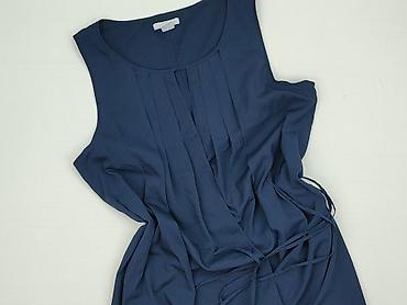 Sukienka damska H&M - Model: bez rękawów, z dekoltem w kształcie litery V - Kolor: granatowy - Krój: lekko odcinana pod biustem, delikatne marszczenia, luźno opadająca - Długość: przed kolano (tun...