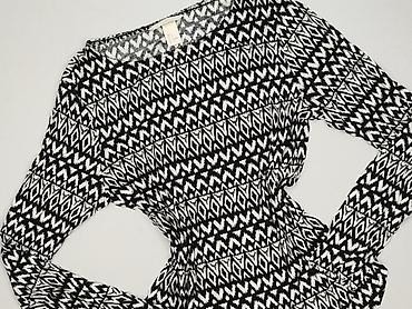 Bluzka damska H&M, rozmiar S - Fason: dopasowany, z długim rękawem - Wzór: czarno-białe, geometryczne paski układane pod różnymi kątami (efekt optyczny) - Dekolt: łódka - Materiał: dzianina elasty...