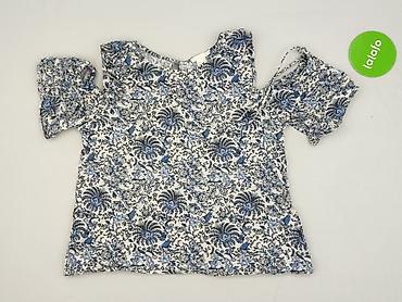 Bluzka damska H&M, rozmiar S. - Materiał: 100% bawełna (metka w środku) - Wzór: gęsty, roślinno-kwiatowy print w odcieniach niebieskiego na białym tle - Krój: lekko luźny - Rękawy: krótkie z wycię...