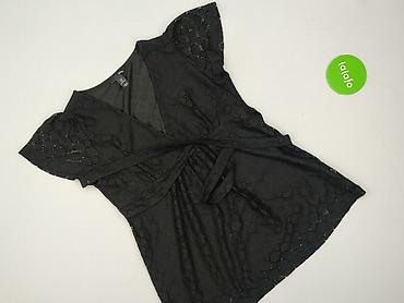 Czarna bluzka damska H&M - Krój: krótkie rękawy, okrągły dekolt, zapięcie na mały guziczek z tyłu - Rozmiar z metki: EU 36 (US/CA/MX 6, CN 165/84A) - Materiał: cienka, miękka tkanina o wyraźnej, p...