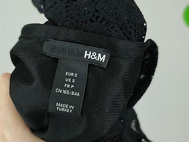 Czarna bluzka damska H&M z koronką - Rozmiar: XS (EUR XS, US XS) - Fason: dopasowany, krótki rękaw - Dekolt/wykończenie: górna część z ażurowej koronki, delikatne frędzelki przy łączeniu materiałó...