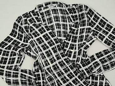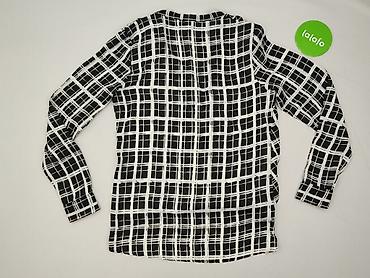 Bluzka damska H&M - Rozmiar: L (EU) - Fason: luźny, z wydłużonym tyłem (hi-low) - Rękaw: 3/4 - Dekolt: w kształcie litery V z krótką listwą i guzikami - Wzór: czarno‑biały, geometryczny/az...