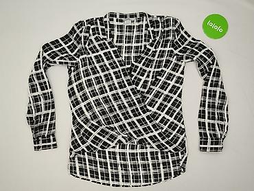 Bluzka damska H&M - Rozmiar: S (EUR S / US S) - Fason: lekko luźny, z wydłużonym tyłem - Dekolt: w serek z krótką listwą i kilkoma guzikami - Rękaw: długi - Wzór: czarno-biały zygzak/chevron - Mat...