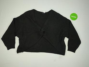 Czarny sweter damski H&M, krótki (crop), z dekoltem w serek. - Fason: sweter o skróconej długości, długie rękawy, prążkowany splot. - Kolor: czarny. - Rozmiar z metki: M (EUR M, 170/96A). - Skład ...