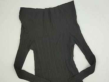 Czarny sweter damski H&M, krótki (crop), z dekoltem w serek. - Fason: sweter o skróconej długości, długie rękawy, prążkowany splot. - Kolor: czarny. - Rozmiar z metki: M (EUR M, 170/96A). - Skład ...