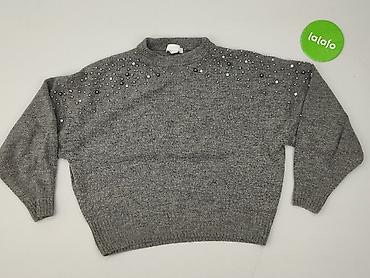Szary sweter damski H&M z ozdobnymi perełkami i kryształkami