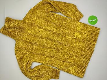 Sweter damski z golfem, złoty, z połyskiem - Fason: dopasowany, z bardzo wysokim, elastycznym golfem oraz szerokim, prążkowanym ściągaczem u dołu i na mankietach - Materiał: dzianina z dodatkiem w...