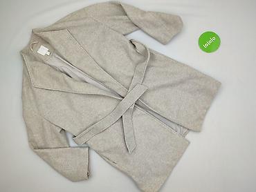 Damski płaszcz H&M, rozmiar M (EUR/US/UK M; 170/96A). - Krój: prosty, długość midi, jednorzędowy - Kolor: jasny beż - Kołnierz: klasyczne, szerokie klapy - Zapięcie: dwa czarne guziki z przodu - ...