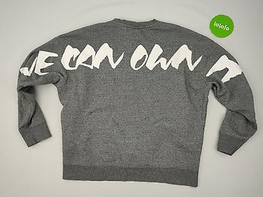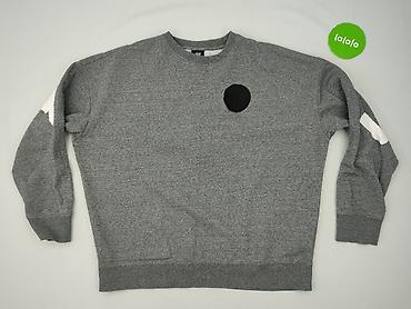 Szara bluza damska H&M, rozmiar L (na metce: EUR L / 175/104A). - Klasyczny krój z okrągłym dekoltem i długim rękawem - Miękka dzianina dresowa w jasnoszarym melanżu - Przód zdobiony aplikacjami z ...