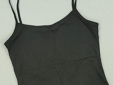 Czarny top na ramiączkach - Krój: luźny, prosty, z delikatnym dekoltem w kształcie litery V z przodu; tył gładki, lekko marszczony u góry. - Ramiączka: wąskie. - Materiał: miękki, ażurowy/koronkow...Stan: