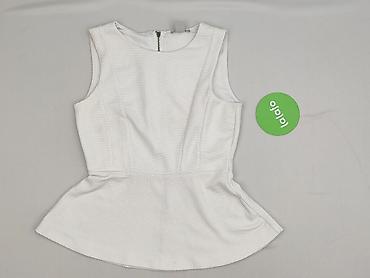 Biały top peplum H&M, damski - Rozmiar: M (EU M / US M / 170/96A – zgodnie z metką) - Krój: bez rękawów, okrągły dekolt, taliowany z falbaną peplum podkreślającą talię - Zapięcie: długi suwak z ty...