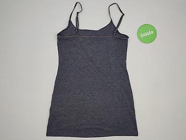 Ciemnoszary top na ramiączkach dla kobiet. Charakteryzuje się prostym krojem i cienkimi, regulowanymi ramiączkami, co zapewnia komfort noszenia. Materiał jest gładki i elastyczny, idealny do noszenia jako element codziennej stylizacji lub jako baza pod inne ubrania. Rozmiar S, odpowiedni dla osób o wymiarach wskazanych na metce.