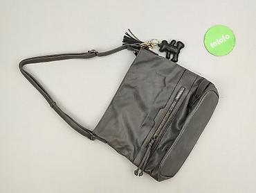 Torebka damska listonoszka, kolor grafitowy/szary, z długim regulowanym paskiem na ramię. Wykonana z miękkiej skóry ekologicznej. Minimalistyczny fason urozmaicony metalowymi suwakami oraz brelokiem w kształcie pieska i frędzlami.