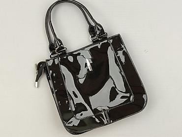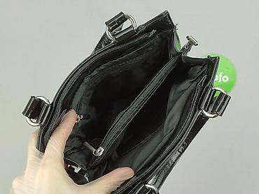 Torebka damska na ramię/crossbody, kolor czarny - Materiał: skóra ekologiczna o gładkim, lekko połyskującym wykończeniu - Format: prostokątny, usztywniany dół z metalowymi stopkami - Pasek: długi ...