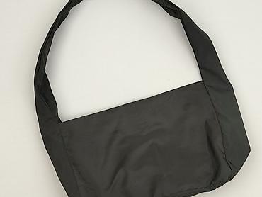 Czarna damska torebka na ramię z tkaniny - Klasyczny, minimalistyczny fason – prostokątna forma z lekko zaokrąglonymi rogami - Materiał: gładka, lekko satynowa tkanina syntetyczna; podszewka w kol...