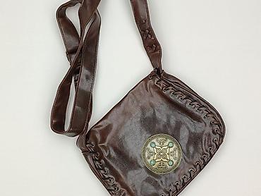 Torebka kopertowa na ramię - Kolor: ciemny brąz z jaśniejszym, dekoracyjnym paskiem na froncie - Materiał: skóra ekologiczna - Zapięcie: klapka na zatrzask magnetyczny - Pasek: długi, wąski, odpin...Stan:
