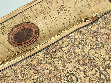 - Styl: boho/etno, front z dekoracyjnym nadrukiem paisley, górna część z naturalnym wzorem korka, detale w kolorze karmelowego brązu, złote zamki.