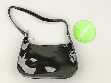 Mała damska torebka na łańcuszku - Kolor: czarny, wysoki połysk - Faktura: tłoczenie imitujące skórę krokodyla - Materiał: skóra ekologiczna/lakierowana (na połysk) - Okucia: srebrny łańcuszek na ...
