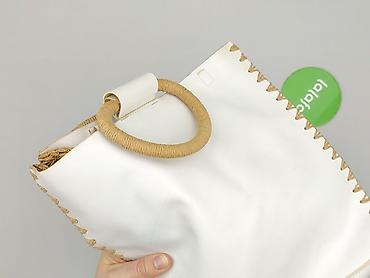 Torebka damska pleciona typu shopper/koszyk - Materiał: plecionka słomkowa/syntetyczna w kolorze jasnego beżu - Rączki: długie, ciemnobrązowe, z ekoskóry; wygodne do noszenia na ramieniu - Zapięci...Stan: