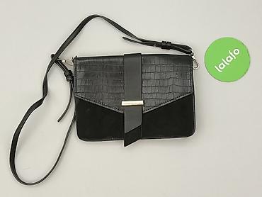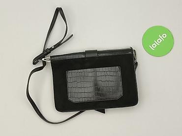 Torebka damska na ramię/crossbody, kolor czarny - Materiał: skóra ekologiczna o gładkim, lekko połyskującym wykończeniu - Format: prostokątny, usztywniany dół z metalowymi stopkami - Pasek: długi ...Stan: