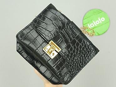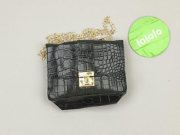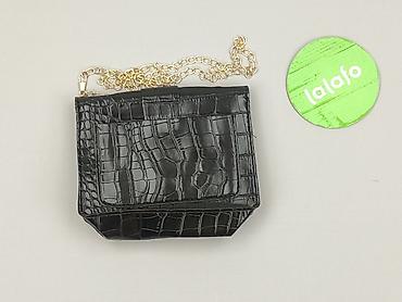 Mała damska torebka na łańcuszku - Kolor: czarny, wysoki połysk - Faktura: tłoczenie imitujące skórę krokodyla - Materiał: skóra ekologiczna/lakierowana (na połysk) - Okucia: srebrny łańcuszek na ...